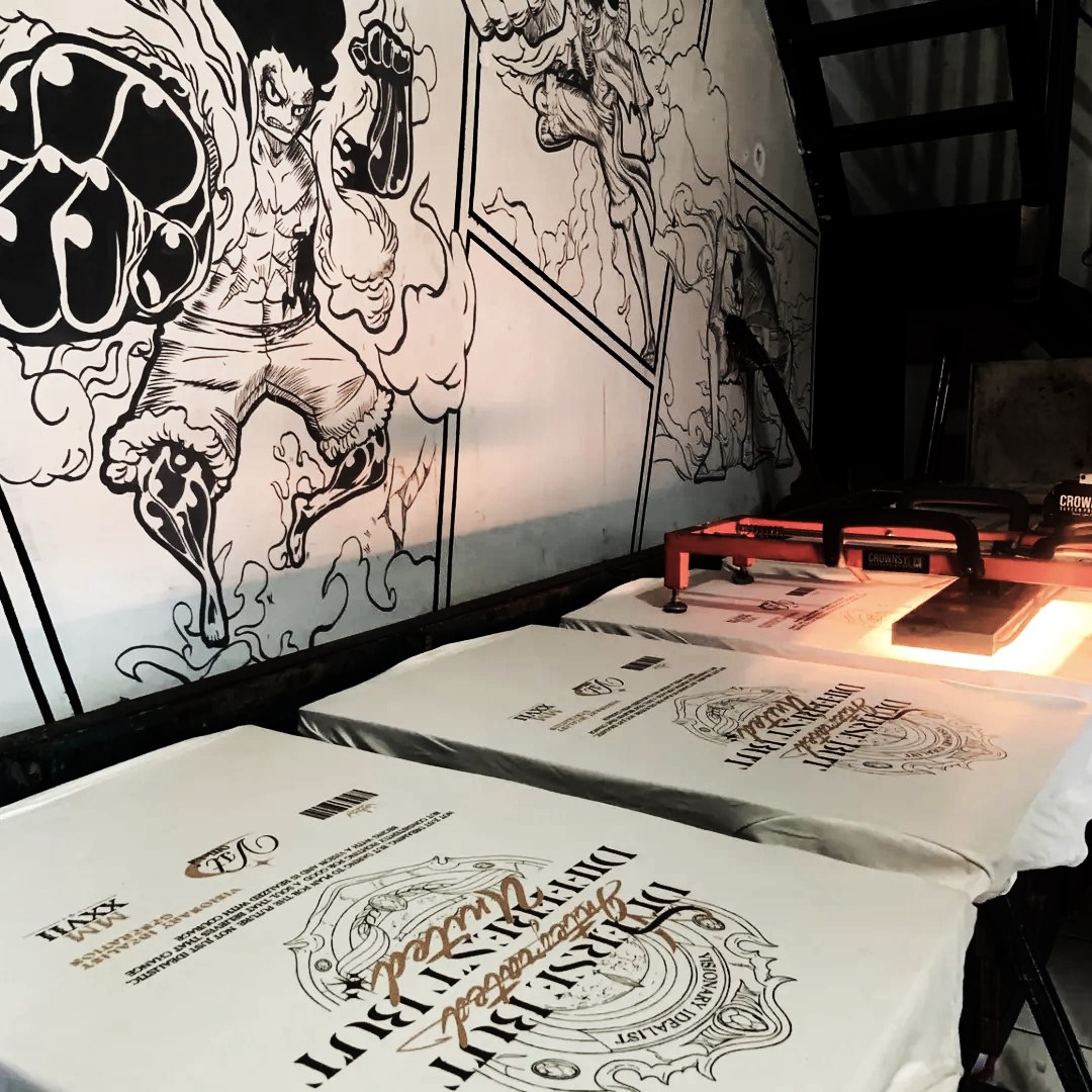 Proses sablon presisi untuk order komunitas.