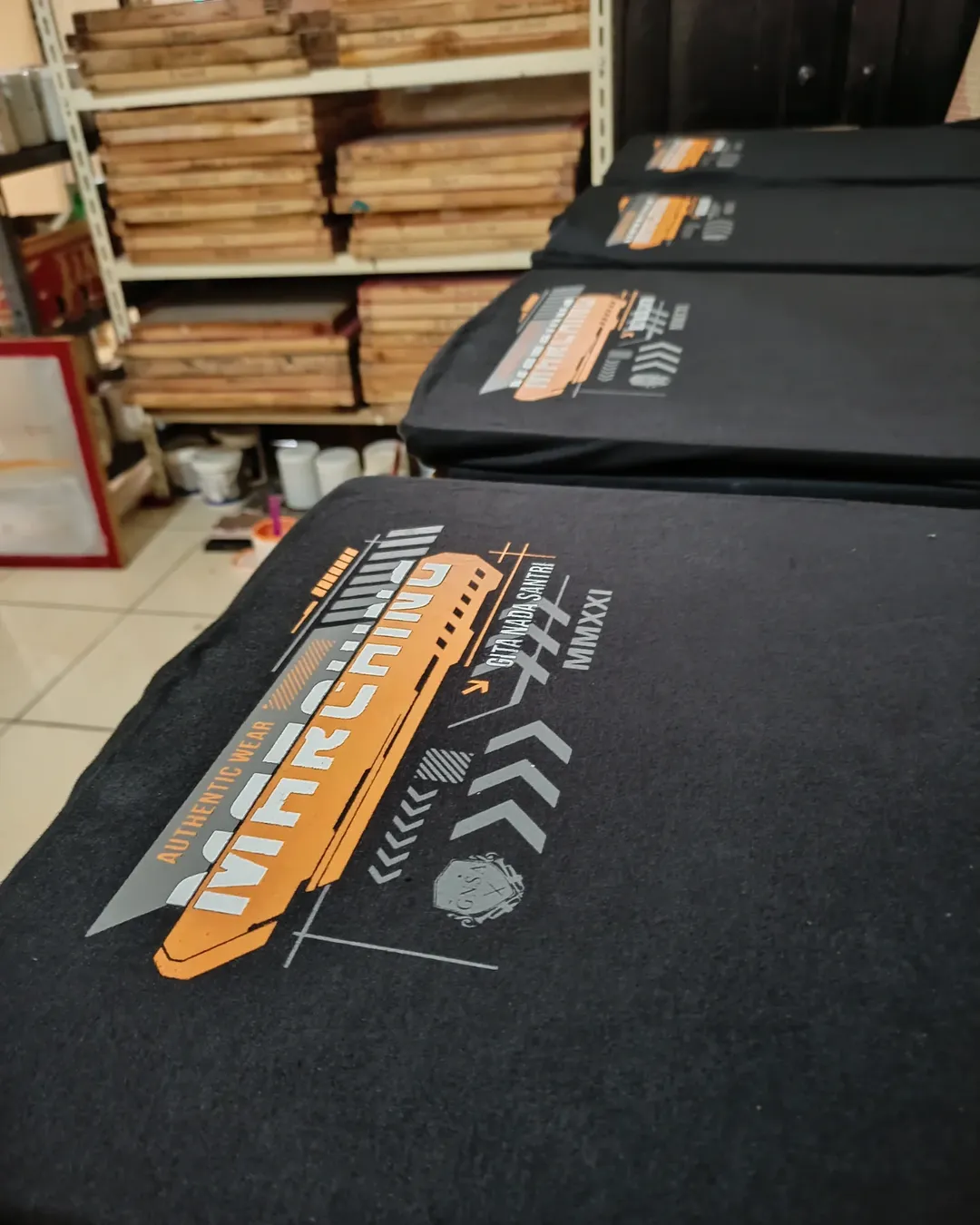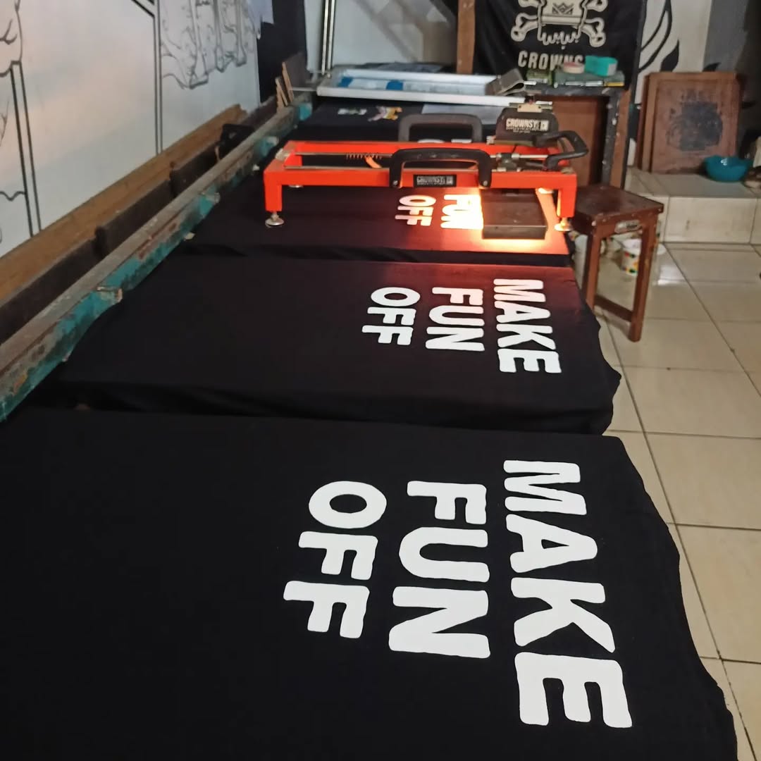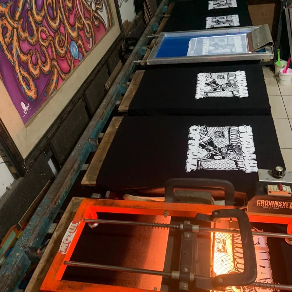 Proses sablon presisi untuk order komunitas.